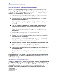 Add Value by Protecting Your Customers Against Spyware: White paper for Aluria Software. | ||||||