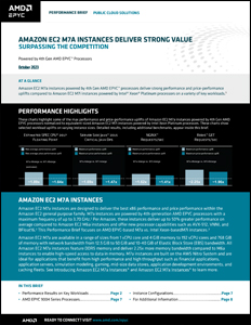 Cloud performance brief: Showcases the competitive performance of Amazon EC2 m7a instances versus Amazon EC2 M7i instances running several key workloads. |