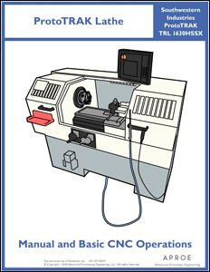Lathe: Guide that describes performing basic lathe procedures (turning, facing, drilling, parting) in both manual and CNC modes. |