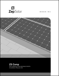 ZS Comp Installation Guide: Guide for installing the Zep Comp photovolatic array on a composition shingle roof. Illustations created from client-supplied data and original 3D modeling in Rhinoceros 3D. |